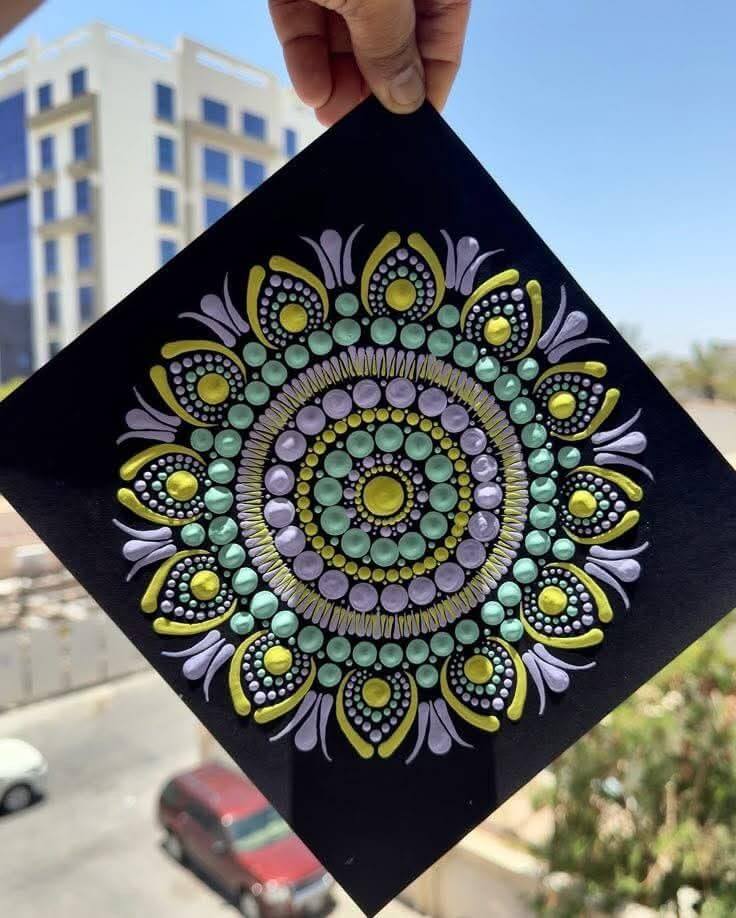 Learn how to creatively incorporate a mirror into your dot mandala design, decorate beautifully around it, and use the right glue for safe and secure placement.