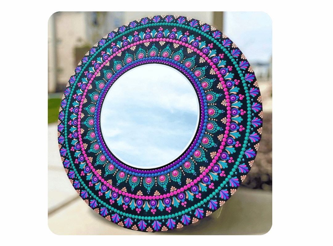 Learn how to creatively incorporate a mirror into your dot mandala design, decorate beautifully around it, and use the right glue for safe and secure placement.